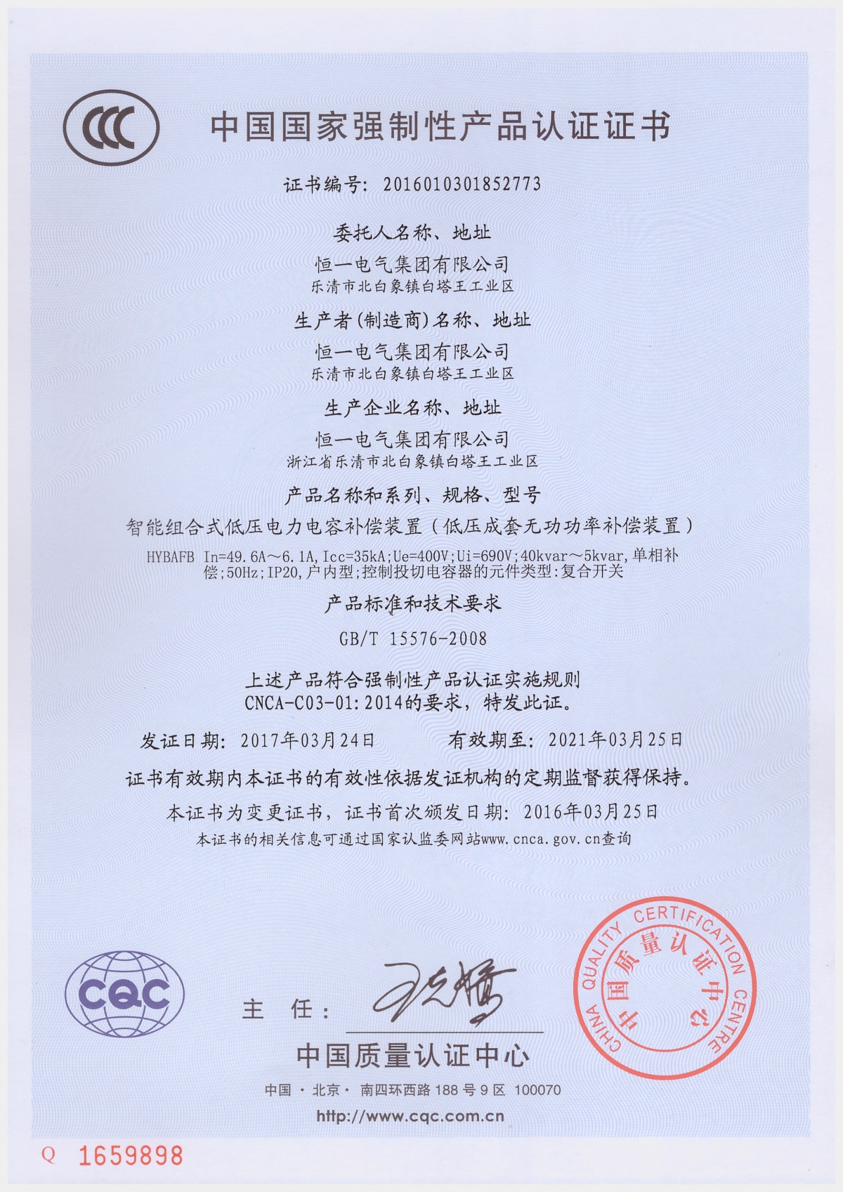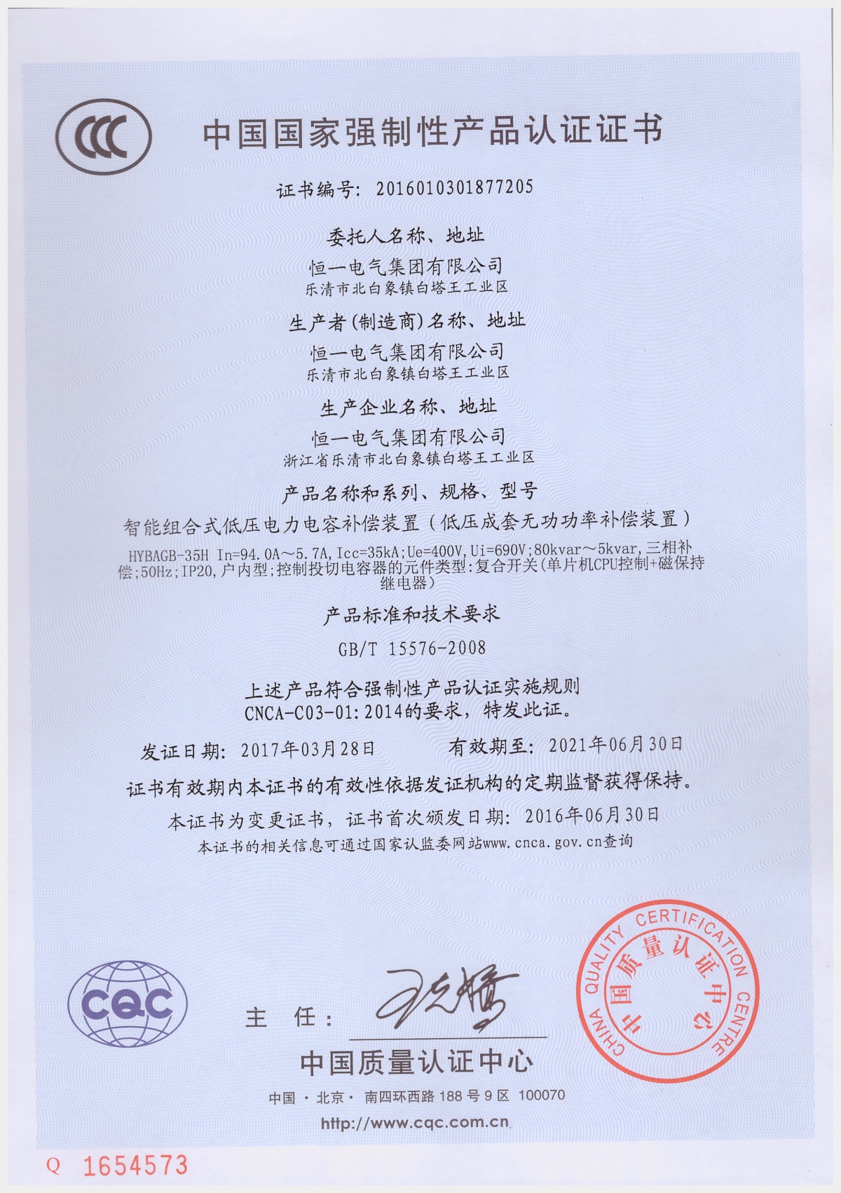 恒一智能組合式低壓電力電容補償裝置( 智能電容器)是0.4kV 低壓配電網(wǎng)降低線損、提高功率因數(shù)、改善電能質(zhì)量和節(jié)能降耗的智能型無功補償裝置。